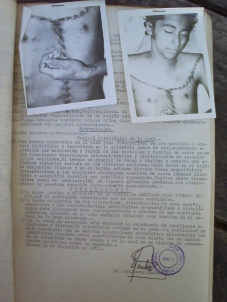 A las 16:00 hrs. el médico Legista Reuter inició la autopsia referida en esta investigación. El cadáver fue recibido por Reuter sin ningún tipo de antecedentes por parte de Personal Militar.