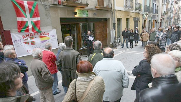Precisamente, justo donde Cano fue asesinado, Ahaztuak congregó a decenas de personas y descubrió una placa en su memoria.