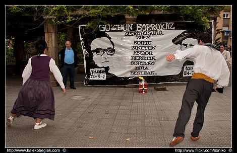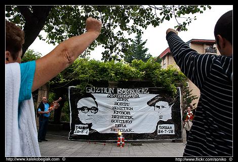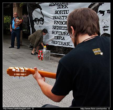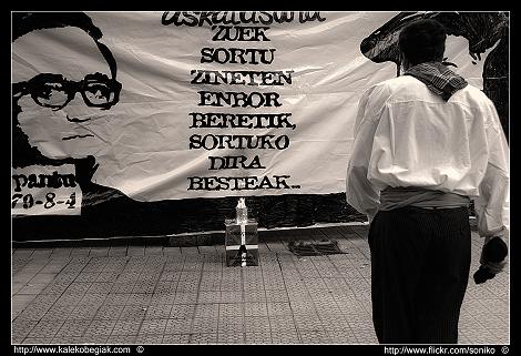 Las bandas criminales paramilitares españolas asesinaron a Tomas Perez Revilla y a Pantu hace ya un buen numero de años, pero eso no es óbice para que vecinos de Bilbo sigan recordándoles en un acto sencillo, pero emotivo.