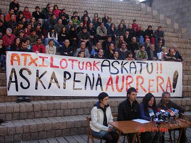 Rueda de prensa del Movimiento Internacionalista de Euskal Herria y resto de agentes sociales y organizaciones abajo firmantes ante la operación policial contra la organización internacionalista Askapena