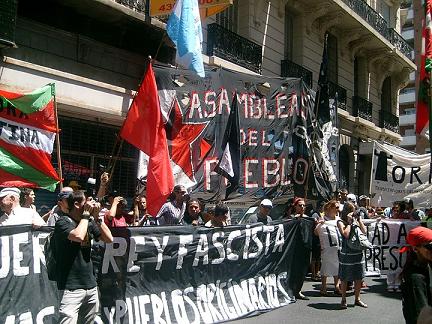 Solidari@s con Euskal Herria y otros colectivos sociales argentinos de apoyo a pueblos originarios hicieron saber a los monarcas españoles que su presencia en Buenos Aires, no es en absoluto grata y entre otras cosas reclamaron el respeto para el pueblo de Euskal Herria y la libertad para l@s pres@s politic@s vasc@s.