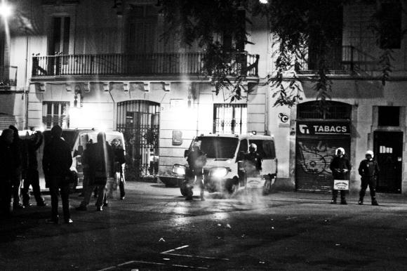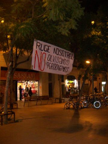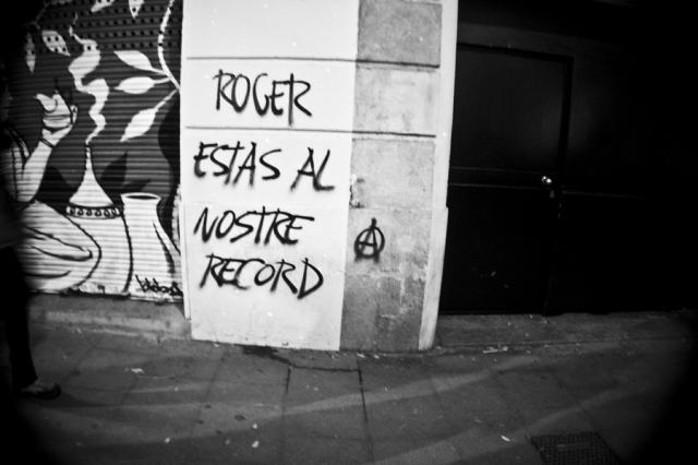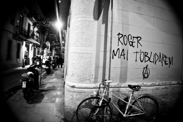 La protesta continuó por la calle Verdi, Plaça de la Revolució, Carrer Perol, Plaça de la Vila de Gracia, donde tiene sede el ayuntamiento de Gracia frente al cual había un gran cordón de UPAS (antidisturbios de la Guardia Urbana) protegiéndolo, y acabó frente a la parada de metro Fontana donde fue vilmente asesinado con un cuchillo de caza, nuestro compañero Roger.