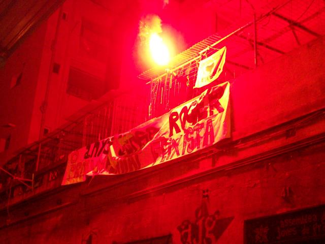 Como ya viene siendo costumbre, las antorchas y los petardos dieron luz y ruido a la mani. Durante todo el recorrido se fueron sucediendo las pintadas en las que se reclamaba justicia por el asesinato de Roger y contra la impunidad fascista. El cortejo bajó por carrer del Rubi, plaça de la Virreina, donde también se descolgó una pancarta en unos andamios y se encendió una bengala, así como en la azotea del Casal Popular de Gracia.