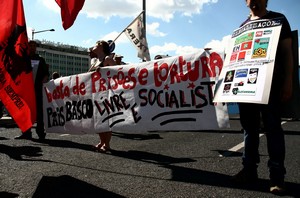 Este ano, voltámos a contar com a participação de um bom número de activistas e amigos, que desceram a Avenida da Liberdade divididos em dois grupos, um deles seguindo uma faixa em que se lia «País Basco. Independência e Socialismo» e o outro atrás da faixa com a inscrição «Basta de prisões e tortura. País Basco livre e socialista».