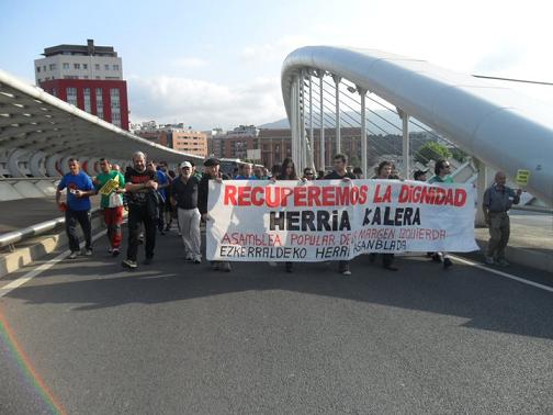 A iniciativa de las asambleas de parad@s de ezkerraldea, se ha celebrado una marcha que ha unido varias localidades bizkaitarrak, y que ha finalizado en Sestao, en demanda de un puesto de trabajo digno y con derechos.