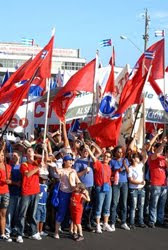 Después continuarían los representantes de los sindicatos nacionales y de los centros de producción y servicios con consignas revolucionarias, banderas cubanas, pancartas y otras iniciativas.