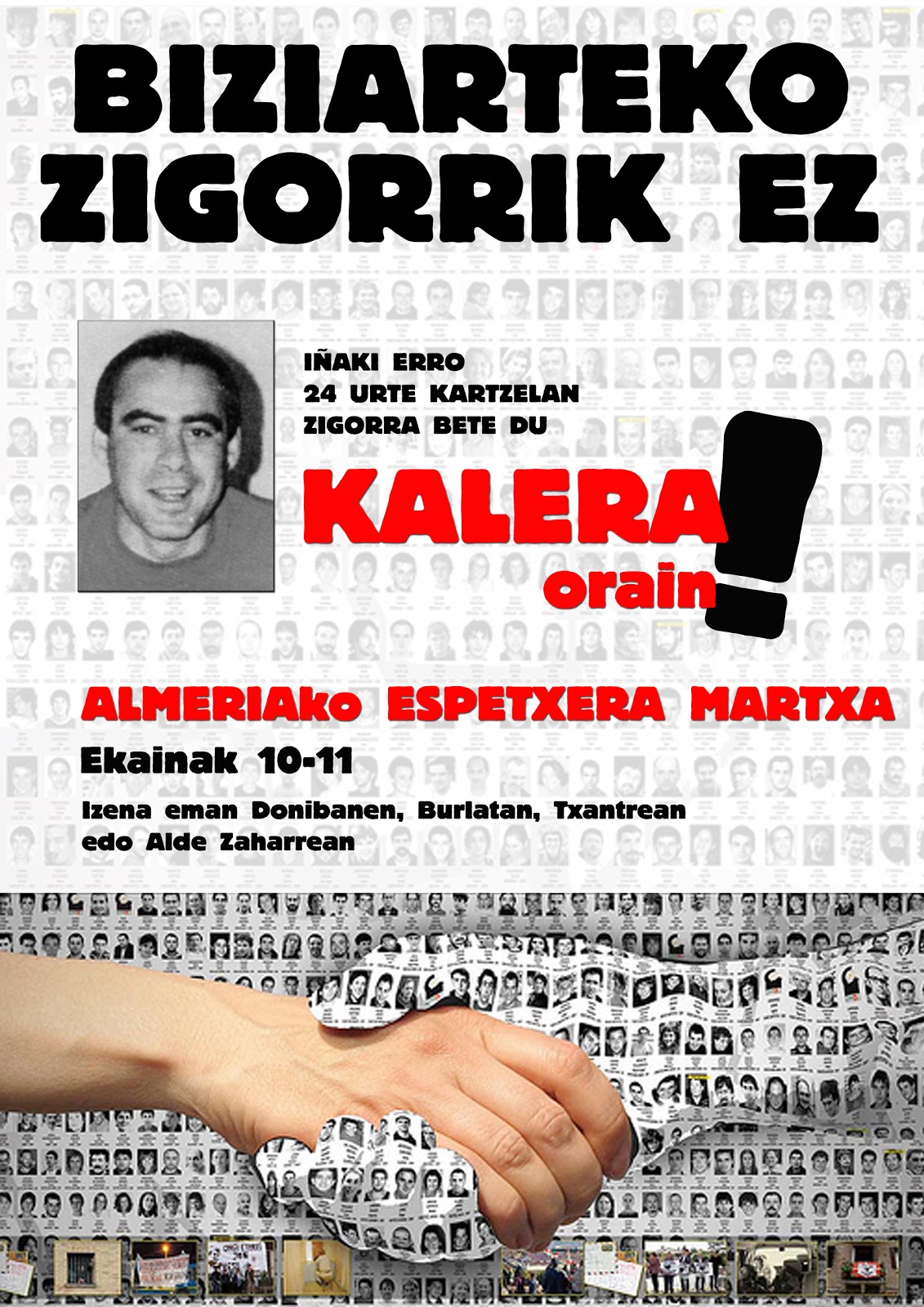 La marcha ha sido organizada desde Donibane, Alde Zaharra, Txantrea y Burlata. Y es que, además de Iñaki Erro, en la prisión de Almería cumplen condena Jorge Olaiz (Alde Zaharra), Alberto Viedma (Txantrea) y Xabier Arina (Burlata). Las listas para apuntarse están en los lugares habituales.