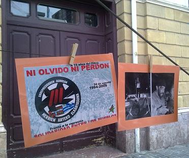 La policia uruguaya, en una tristisima noche en Montevideo, inició una represioón que ocasiono dos muertos. Dos jovenes uruguayos dieron su vida por la solidaridad, el internacionalismo, el derecho al asilo y Euskal Herria.