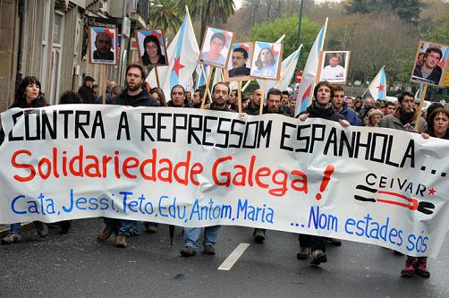 La marcha había sido convocada por Ceivar y terminó en la plaza del Toural. En la plaza tomaron la palabra varias personas, que denuncaron las pasadas operaciones contra un sector de la juventud galega, rebelde e indepedentista.