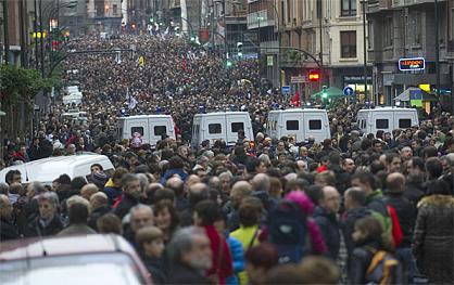 Desde luego las amenazas del consejero de la porra han caido en saco roto y le ha tocado presenciar, la colosal manifestación de Bilbo.