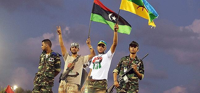 | Con la bandera Amazigh (un sector de este movimiento en el Norte de África tiene claros vínculos con el sionismo y Bernard Henri-Levy) |