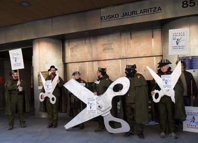 Representantes de diversas organizaciones sociales, entre ellas Sare Antifaxista, y de los sindicatos ELA, CNT, LAB, CGT, ESK, STEE-EILAS, EHNE e HIRU han realizado una concentración frente a la sede del Gobierno de Lakua en Bilbo para denunciar el recorte de las prestaciones sociales.