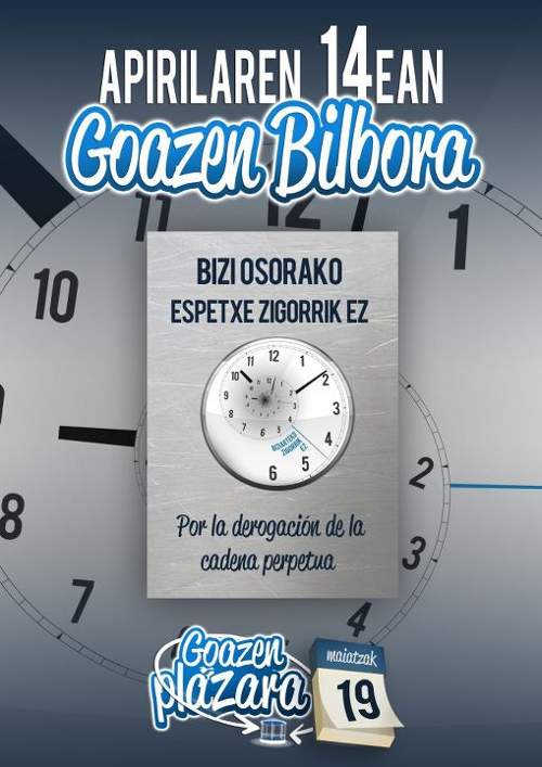 Este sábado día 14 de abril en Bilbo y desde las 5 y media y saliendo de La Casilla, manifestación por el final de la cadenaperpetua contra las y los prisioneros póliticos vascos.
