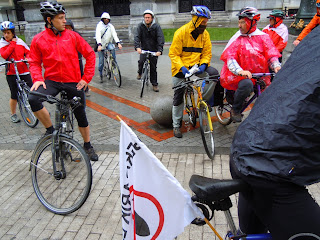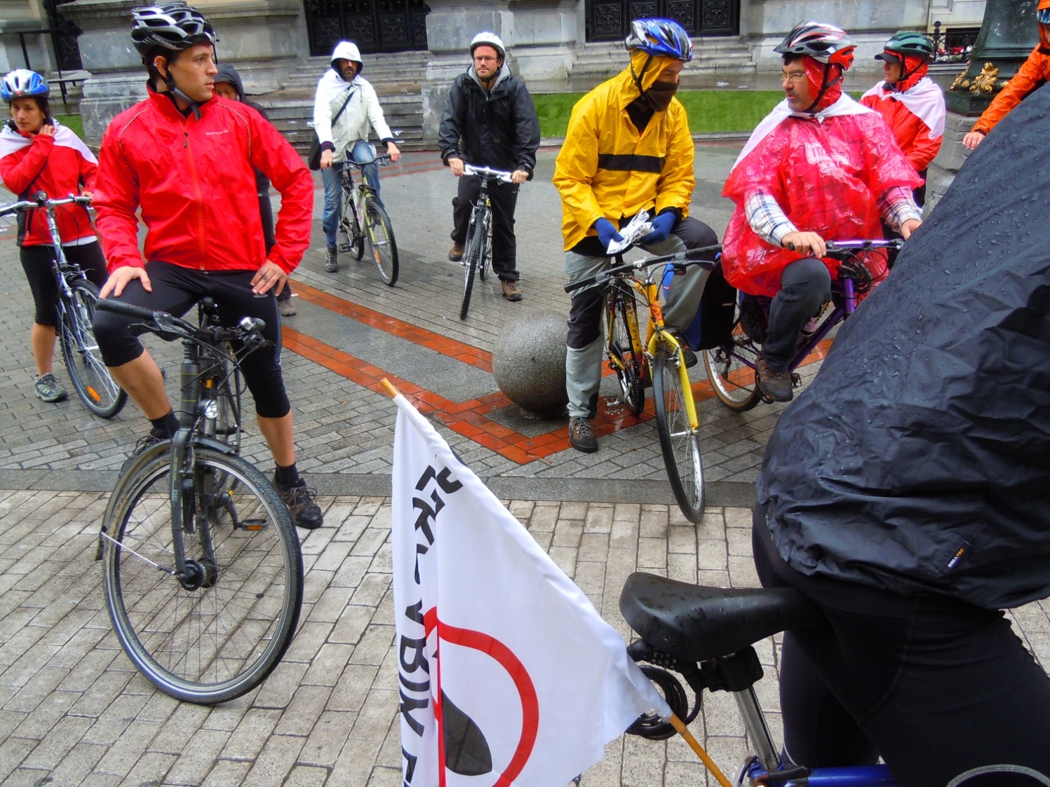 Esta mañana, y bajo una intensa lluvia, se ha desarrollado la “5ª Marcha Ciclista contra la Industria y el Gasto Militar”. Diferentes colectivos ecologistas, antimilitaristas y de solidaridad internacional han organizado esta iniciativa.
