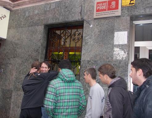 El jóven de Barakaldo Igor Katxorro, sobre el cual pesaba una orden de busqueda y captura para ingresar en prisión para terminar de cumplir una condena de dos años de cárcel, acusado de kale Borroka, se ha encadenado en la sede del PSOE de Barakaldo para provocar su detención.
