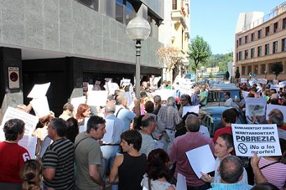 ●Personas desempleadas, o con empleos precarios, de la Margen Izquierda se han concentrado en la mañana del martes 16 de julio ante el INEM-Lanbide de Barakaldo contra uno de los mayores recortes sociales de los últimos tiempos: el viernes de la semana pasada el gobierno español anunció la reducción de las prestaciones por desempleo o de las pensiones; además, de las ayudas a la Ley de Dependencia. A su vez se aprobó una subida del IVA que encarece los principales productos básicos.