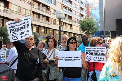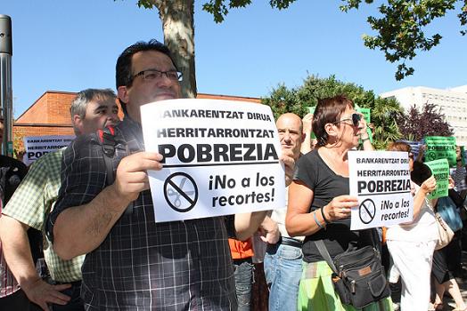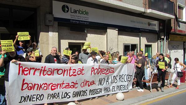 ●Estas políticas suponen un empobrecimiento generalizado de la población. Están agravando la recesión, aumentando el desempleo, recortando la protección social y haciendo que cada vez más gente tenga problemas para llegar a fin de mes. Hecho muy palpable en la comarca de Ezkerraldea que acumula altísimos índices de paro, pobreza, desahucios y exclusión social.