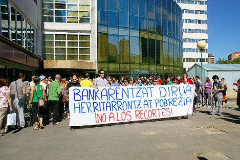 ●Por todos estos motivos diferentes organizaciones sociales y sindicales han decidido movilizarse y hacer un llamamiento al conjunto de vecinos y vecinas de Ezkerraldea a mostrar un absoluto rechazo a estas medidas de recorte social. Para lo que se ha organizado, para la tarde de mañana, miércoles 18 de julio, una concentración en Sestao, municipio con la tasa de paro más alta.