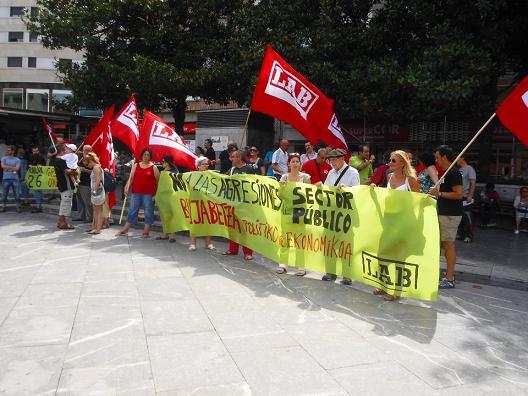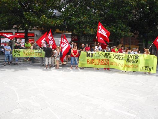 Mediante una concentración en Barakaldo, LAB Sindikatua ha salido a la calle a defender a l@s trabajador@s públicos, en contra de los recortes y agresiones que éstos padecen y recordando que el próximo 26 de setiembre tod@s tenemos una cita con la Huelga General en Hego Euskal Herria.