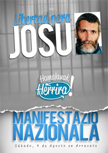 Aprovechamos la información sobre Txus Martín, para recordar la también tremenda situación que atraviesa el preso arrasatearra Iosu Uribetxeberria, al cual se le ha condenado a muerte según Herrira, dada la extrema gravedad de su enfermedad. Pese a ello, se le mantiene en prisión, en una muestra de crueldad que deberia avergonzar al estado español. Junto a las fotos de la concentración de Gorbea vamos a poner el cartel de la manifestación nacional que se va a celebrar el sábado en Arrasate, para exijir su libertad. El sábado en Arrasate, la cita es por Iosu y por Txus y por el resto de pres@s enferm@s que ya deberian estar en casa, en Euskal Herria. Esa es la cita ineludible.