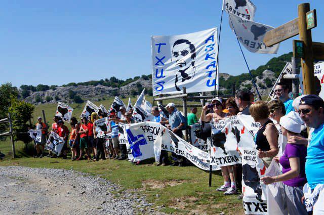 Alrededor de cien personas han exijido la libertad de Txus Martin, realizando una encartelada en el monte Gorbea, lugar de mucho «transito» de excursionistas en días como el de S.Inaxio, festivo en Gipuzkoa y Bizkaia. En ese mismo lugar se han concentrado, dejando patente que no sólo la de Txus, también exijen la libertad de tod@s y cada uno y una de l@s pres@s vasc@s con enfermedades graves.