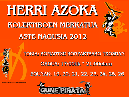 Ordua: 17:00tik * 21:00etara Egunak: 19, 20, 21, 22, 23, 24, 25, 26 * Hemen material Antifaxista aurki dezakezu. * Aqui podras encontrar material Antifascista.