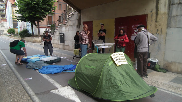 Una decena de activistas sociales de Barakaldo han montado un campamento debajo del puente que se encuentra en las inmediaciones del centro de empleo y orientación laboral de la agencia municipal de desarrollo ![]()