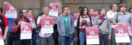 Esta movi­li­za­ción ha esta­do orga­ni­za­da por el más de cen­te­nar de agen­tes socia­les y sin­di­ca­les con­vo­can­tes de la Huel­ga del 26S.
