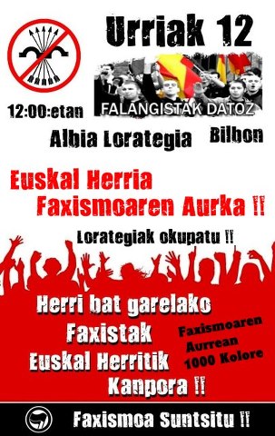 12 de octubre: !! Euskal Herria contra el fascismo ¡¡ Okupa los Jardines