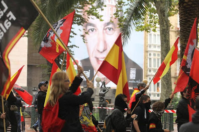 Desde Lau Haizetara Gogoan, exigimos responsabilidades a los cargos institucionales para que den explicaciones por haber permitido la presencia de la falange española y grupos pro-nazis en Euskal Herria; y definan su vinculación política e ideológica respecto de los mismos.