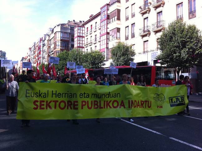 En la movilización ha participado la Secretaria General de LAB, Ainhoa Etxaide, que ha hecho declaraciones llamando a unir la lucha de la clase trabajadora a nivel mundial, y en especial contra los recortes en Europa.