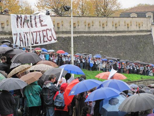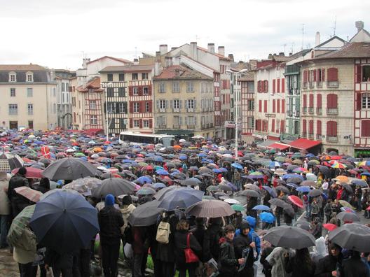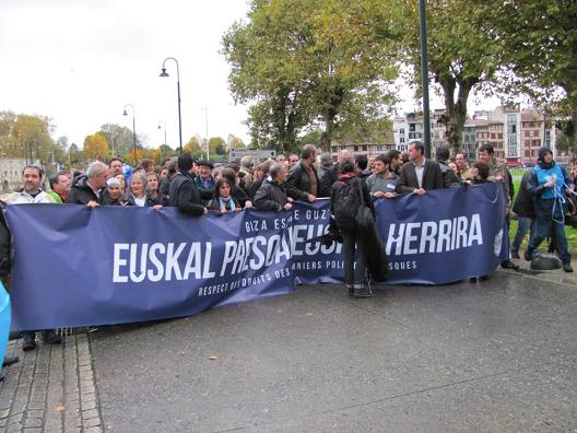 Las personas que han acudido han desfilado bajo una intensa lluvia a media tarde al grito de “Euskal presoak, etxera” y otros en los cuales se recriminaba la colaboración del estado frances en la estretegia represiva del estado español. La manifestación, ha sido convocada por Herrira.