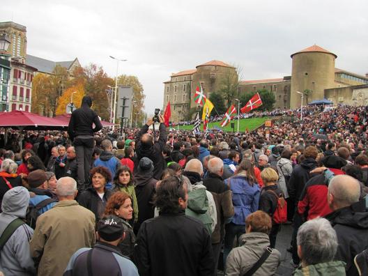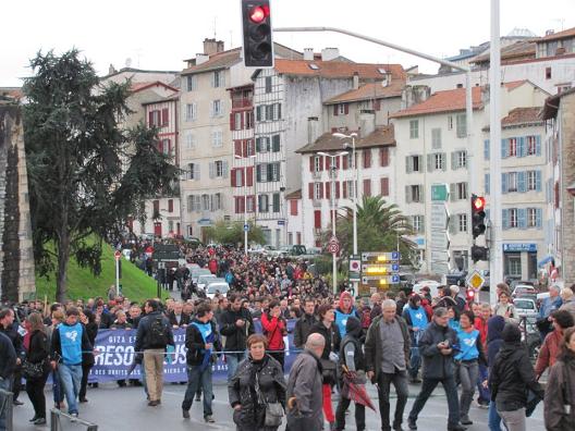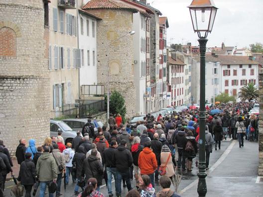 Varios miles de personas, tanto de Hegoalde, como de Iparralde se han manifestado hoy en Baiona, capital de Lapurdi por el acercamiento de l@s pres@s vasc@s. Se habla de la presencia de unas 15.000 personas en la marcha.