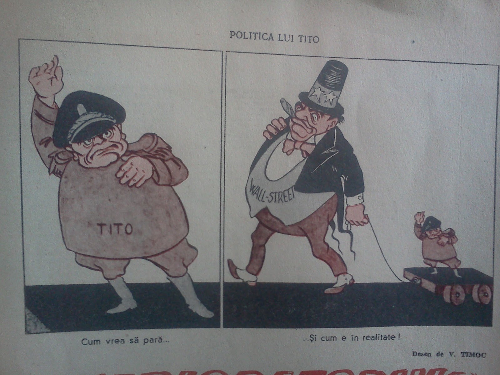 La actitud de Tito, presidente de la Federación Yugoslava, tras el final de la Segunda Guerra Mundial no es entendida en el resto de los paises socialistas. El acercamiento del antiguo partisano al imperialismo norteamericano y a la economia capitalista es criticado por la Revista Urzica, que convierte al yugoslavo en un juguete de Wall Street.