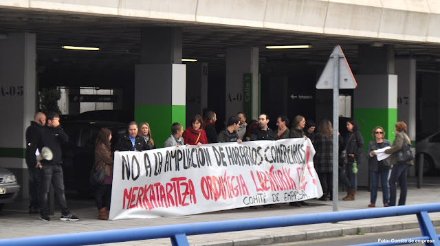 El comité de empresa —UGT, LAB y USO— ha informado de que la “imposición” de la compañía supone que el establecimiento abre sus puertas a las 9.00 horas en lugar de a las 10.00, como sucedía hasta ahora. La representación de los trabajadores entiende que esta medida puede suponer un intento de abrir camino a la apertura en domingos y festivos.