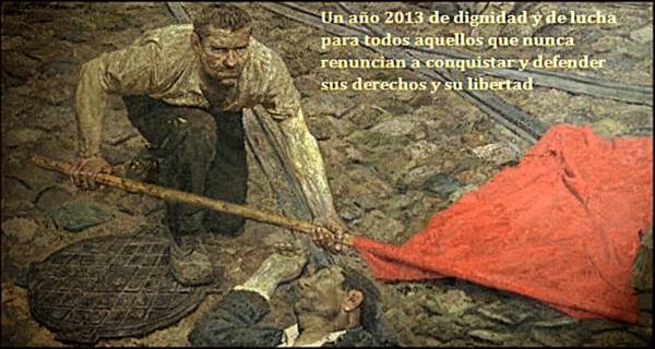 Está en ruina el abrazo del compañero, el del camarada tiempo que se perdió, y la pólvora de su música no rezuma futuro… Pero se que el destino de la mañana está en manos de mis hermanos, que son también las mías. Peligra su claridad por eso que no dudo, ahí firme, despido el año cantando a la vida. El nuevo amanecer no se encuentra en la casa del amo ni en la de sus mercenarios ni comemierdas: