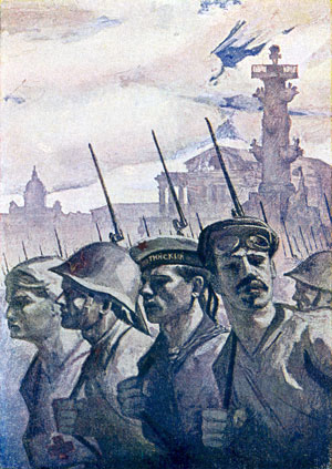 La Unión de Artistas de Leningrado, no sólo aportó hombres al ejército, si no que se encargaron de la protección y el camuflaje de importantes edificios. Cada mañana aparecían nuevas pintadas y dibujos en las calles llamando a la resistencia. Los dibujantes ilustraban los periódicos, así como los carteles pegados en las paredes.