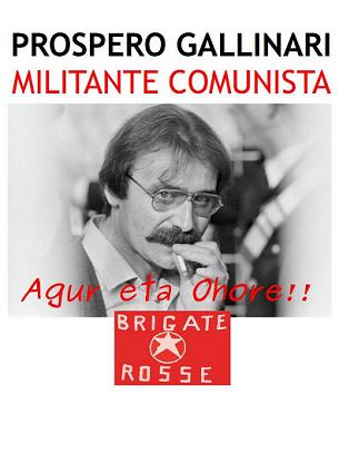 Prospero Gallinari, militante revolucionario y comunista italiano de las Brigadas Rojas, fallecia el pasado dia 14 de enero en su domicilio de Reggio Emilia, a los 62 años, al parecer de causas naturales.