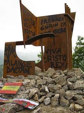 19 actos delictivos. Falange y Tradición (FyT) irrumpió en la escena pública en 2009, año en el que cometió los hechos que se le imputan a este grupo. Atentó principalmente contra monumentos relacionados con la memoria histórica y contra personas y negocios vinculados a la izquierda abertzale. El sumario le atribuye la comisión de al menos 19 actos delictivos.