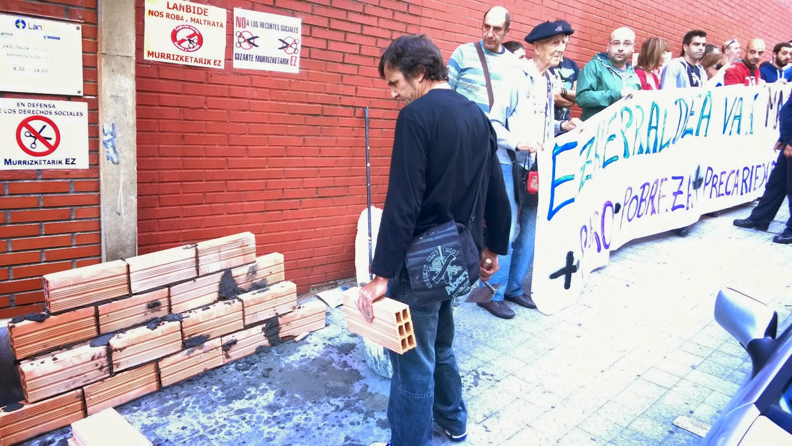 Ante la realidad de continuos recortes y alarmante aumento del desempleo es necesario impulsar un muro social en la Margen Izquierda contra estas situaciones de incremento de la precariedad y la pobreza. 100 ladrillos, cemento, arena, y el resto del material necesario para su construcción, servirán para que varias personas levanten un tabique ante las oficinas de Lanbide en Sestao, municipio con la tasa de paro más alta de Euskal Herria: un 24%.