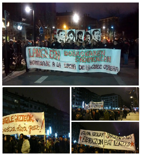 Han sido miles las personas que han recorrido el centro de Gasteiz para recordar a los 5 obreros que fueron asesinados a sangre fría por la policía española despues de ser sacados de la iglesia de Zaramaga donde realizaban una asamblea.