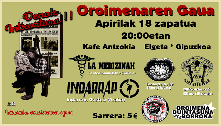 20:00etan Oroimenaren Gaua: Kontzertuak – Espaloia Kafe Antzokia – Sarrera 5€