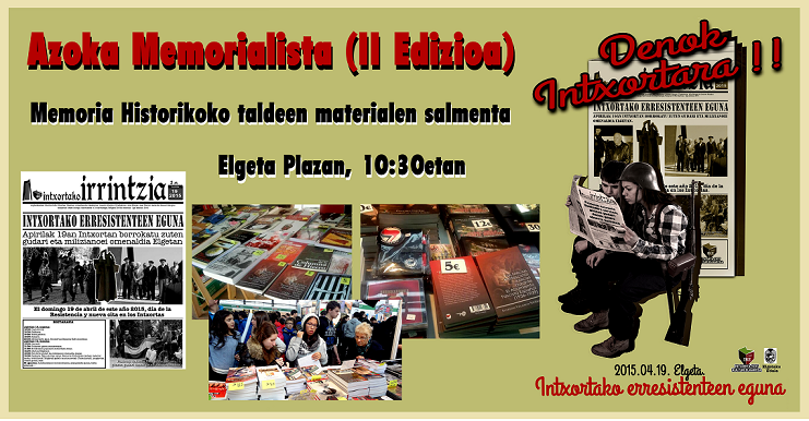 10:30etan Azoka Memorialista (II Edizioa) Memoria Historikoko taldeen materialen salmenta