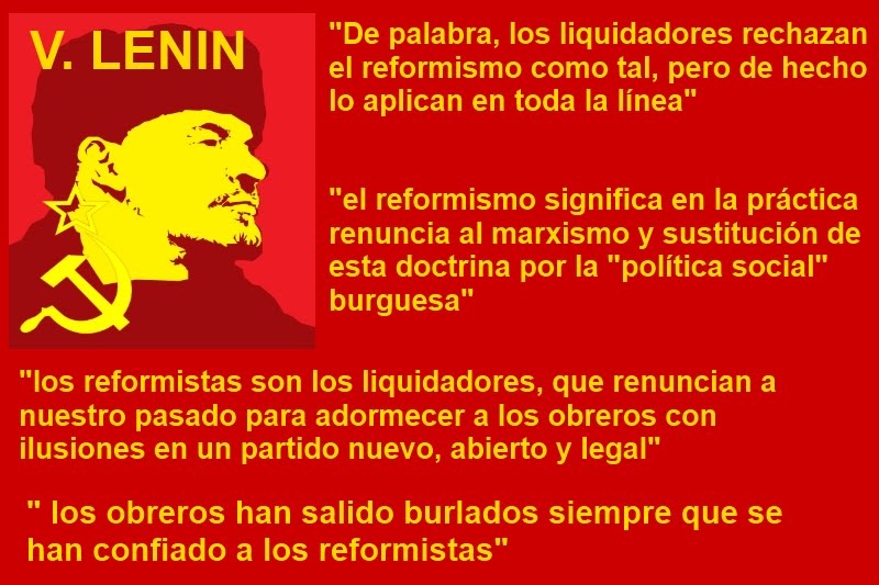 No somos reformistas ‑escribían los liquidadores petersburgueses‑, porque no hemos dicho que las reformas lo sean todo y que el objetivo final no sea nada; hemos dicho: movimiento hacia el objetivo final; hemos dicho: a través de la lucha por las reformas, hacia la realización plena de las tareas planteadas.