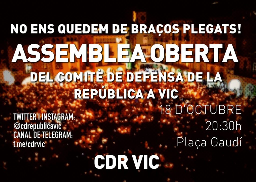 CDR de Vic: «Defendamos los votos, Defendamos la República»