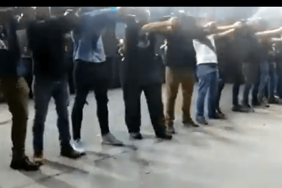 Twitter se ve a los hombres formados en fila. Tras gritar «¡Bolsonaro!»