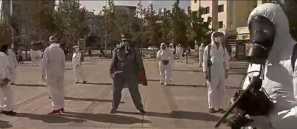 Además, los manifestantes se reúnen con la labor de sanitizar sectores, porque el pueblo ayuda al pueblo. Todos y todas ellas respetaron la distancia y lucían overoles blancos