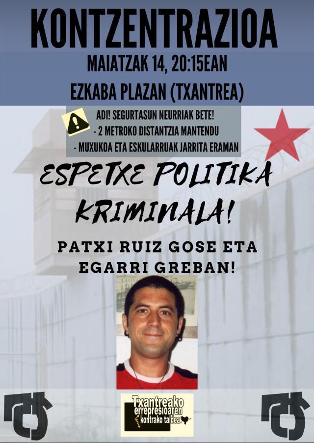 El Movimiento Pro Amnistía y Contra la Represión hace un llamamiento a Euskal Herria a que cada cual, en la medida de sus posibilidades, realice acciones a favor de Patxi.