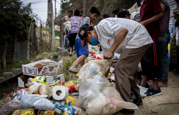 Enri­que Her­nán­dez, pre­si­den­te de la Aso­cia­ción de Veci­nos del Asen­ta­mien­to Dios es Fiel, se encar­ga de repar­tir los víve­res reco­lec­ta­dos el sába­do 25 de abril a las 60 fami­lias que viven en el asen­ta­mien­to /​Andrea Godínez