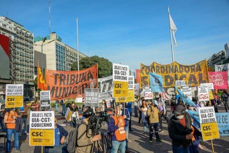 La jornada estuvo presidida por un acto central con distanciamiento, en pleno centro porteño, donde los principales referentes del Plenario del Sindicalismo Combativo tomaron la palabra y denunciaron el pacto antiobrero de la Unión Industrial Argentina, el gobierno y la CGT, en medio de la crisis de la pandemia por coronavirus y el agravamiento de las condiciones vida y trabajo de los trabajadores en todo el país. Tomaron la palabra Alejandro Crespo, secretario general del Sutna (neumático) y miembro de la Coordinadora Sindical Clasista (CSC); Claudio Dellecarbonara de la directiva de la AGTSyP y el MAC (Movimiento de Agrupaciones Clasistas) y Marina Hidalgo Robles de la agrupación de 18 de Diciembre, quienes adhirieron a la convocatoria del PSC; el Frente de lucha Piquetero, que integran el Polo Obrero y otras organizaciones, se expresó a través de la compañera Maribel; Noelia, trabajadora de La Nirva, en conflicto; Guillermo Pacagnini, secretario general de la Cicop y dirigente del ANCLA; y Ruben Sobrero, secretario general de la Unión Ferroviaria Seccional Oeste.